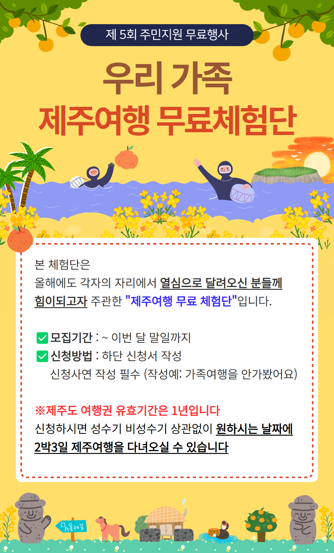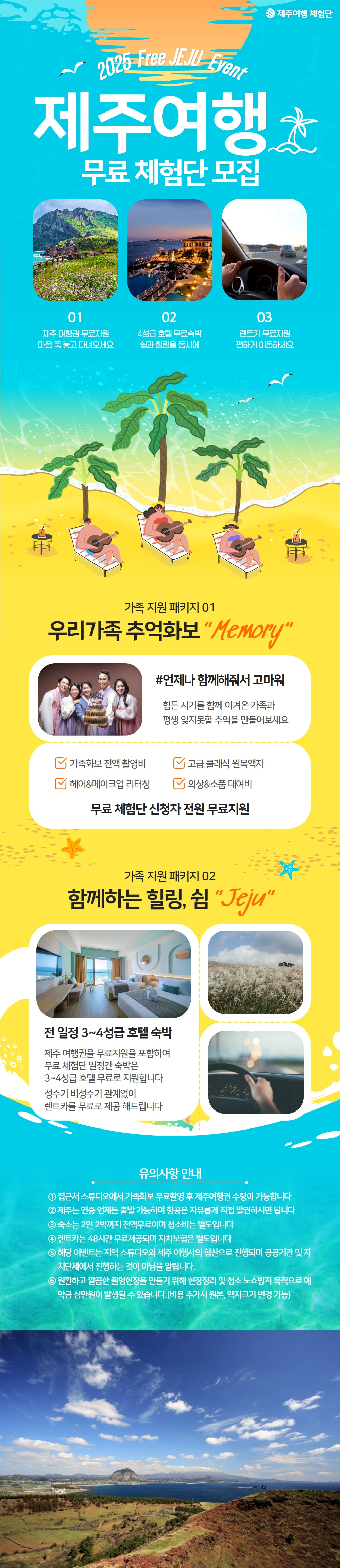 본 무료체험단 행사는 집 근처 가까운 스튜디오에서 가족화보 무상 촬영 후 무료 제주여행권 수령이 가능합니다
